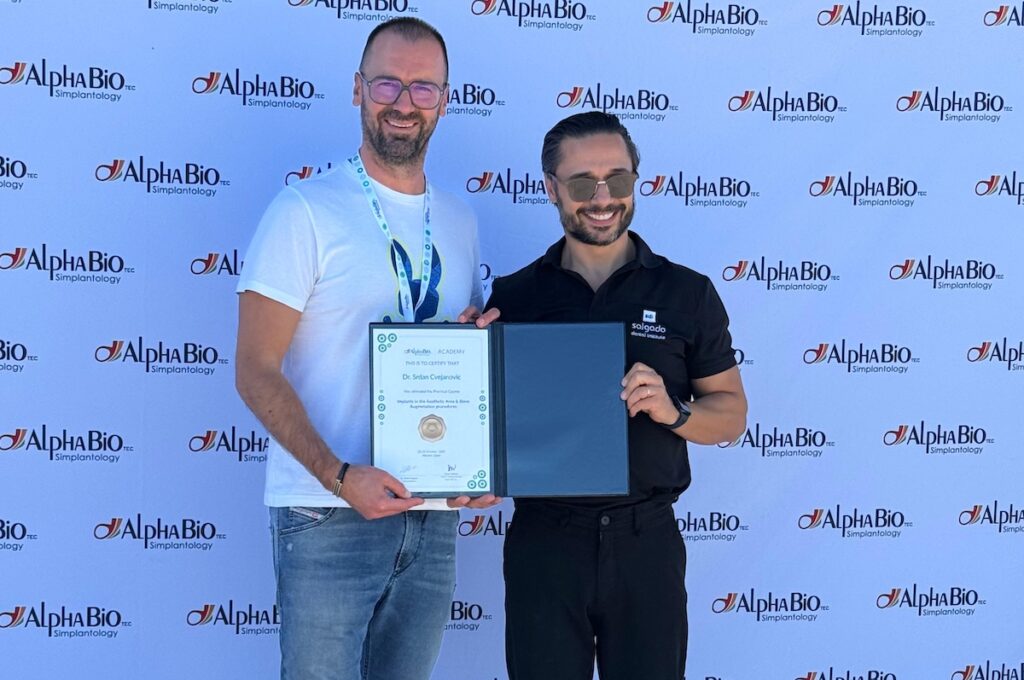 Ponudu da posetimo institut dobili smo od kompanije Alpha Bio, naslednika tradicije inovacija koja je dovela do ALL ON 4 koncepta. Vlasnik brenda Alpha Bio je Nobel Biocare, kompanija koja je prva finansirala ALL ON 4 eksperimente dr Maloa, a praksa stalnog poboljšanja ALL ON 4/ALL ON 6 koncepta je nešto po čemu je Alpha Bio danas prepoznat, uz veliki broj stručnih skupova i novih rešenja svake godine. Dr Srđan je prisustvovao intenzivnom kursu koji je obradio različite moguće situacije tokom ALL ON 6 radova, uključujući pitanja vezana za meka tkiva i sinus lift proceduru. Sve su to znanja koja se često primenjuju istovremeno, jer nema uspešnog ALL ON 6 rada bez očuvanja mekih tkiva, a sinus lift je često preduslov ALL ON 6 i ALL ON 4 radova.